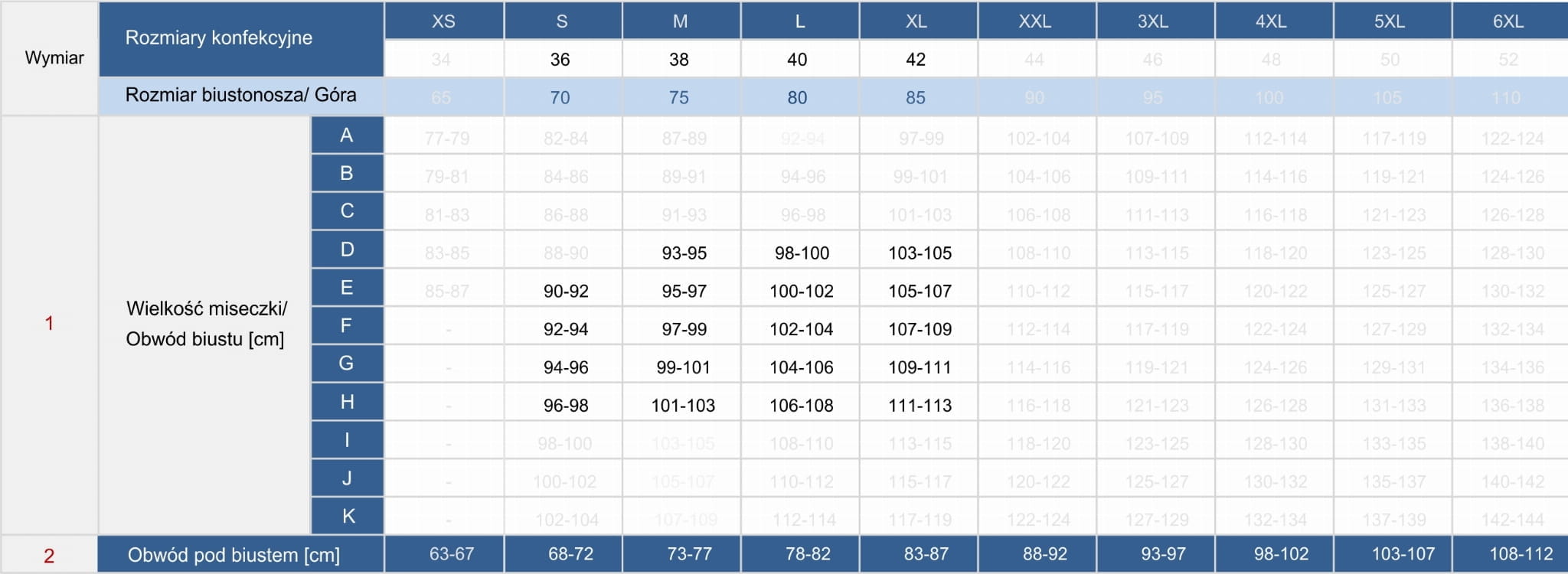Rozmiar biustonosz + majtki