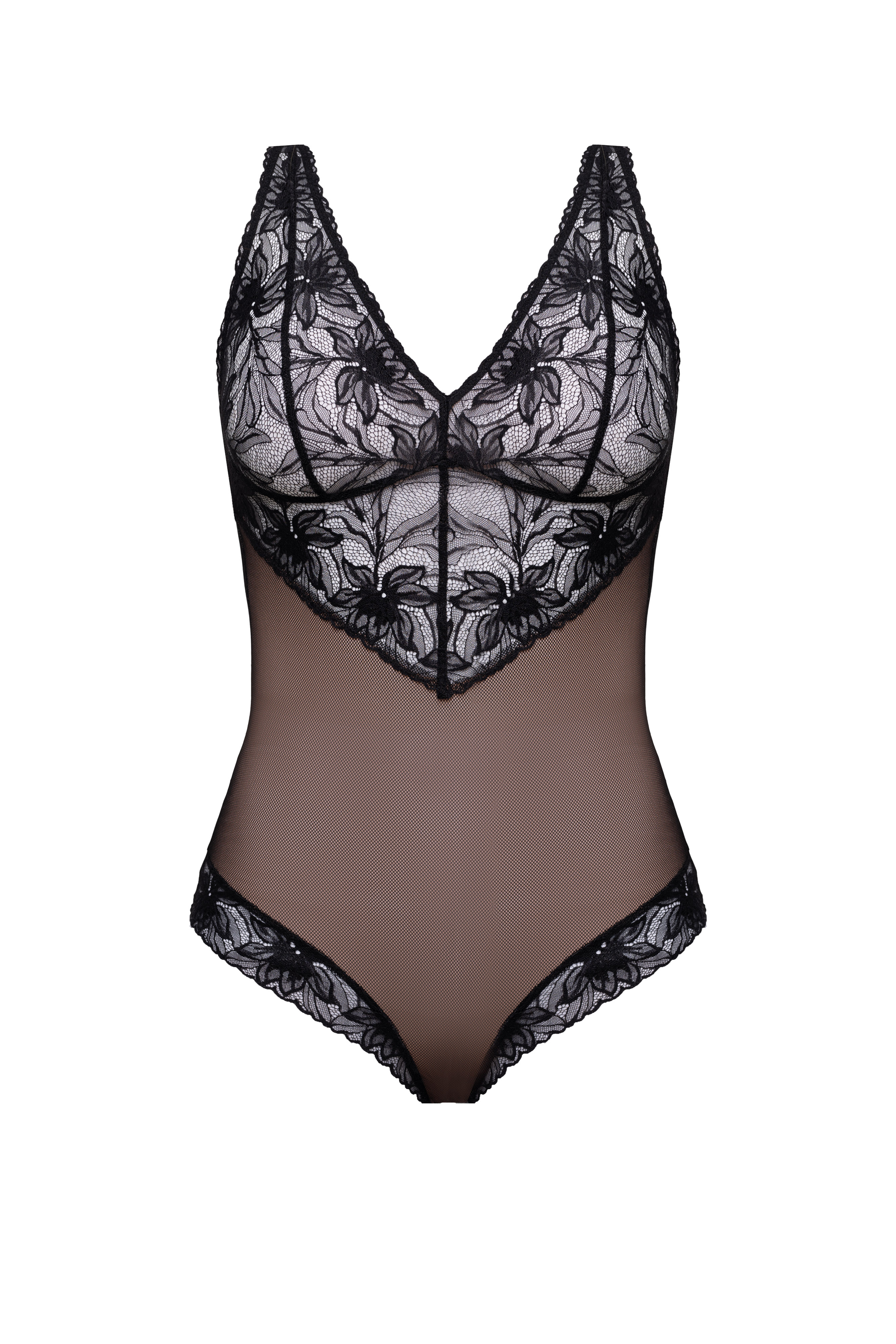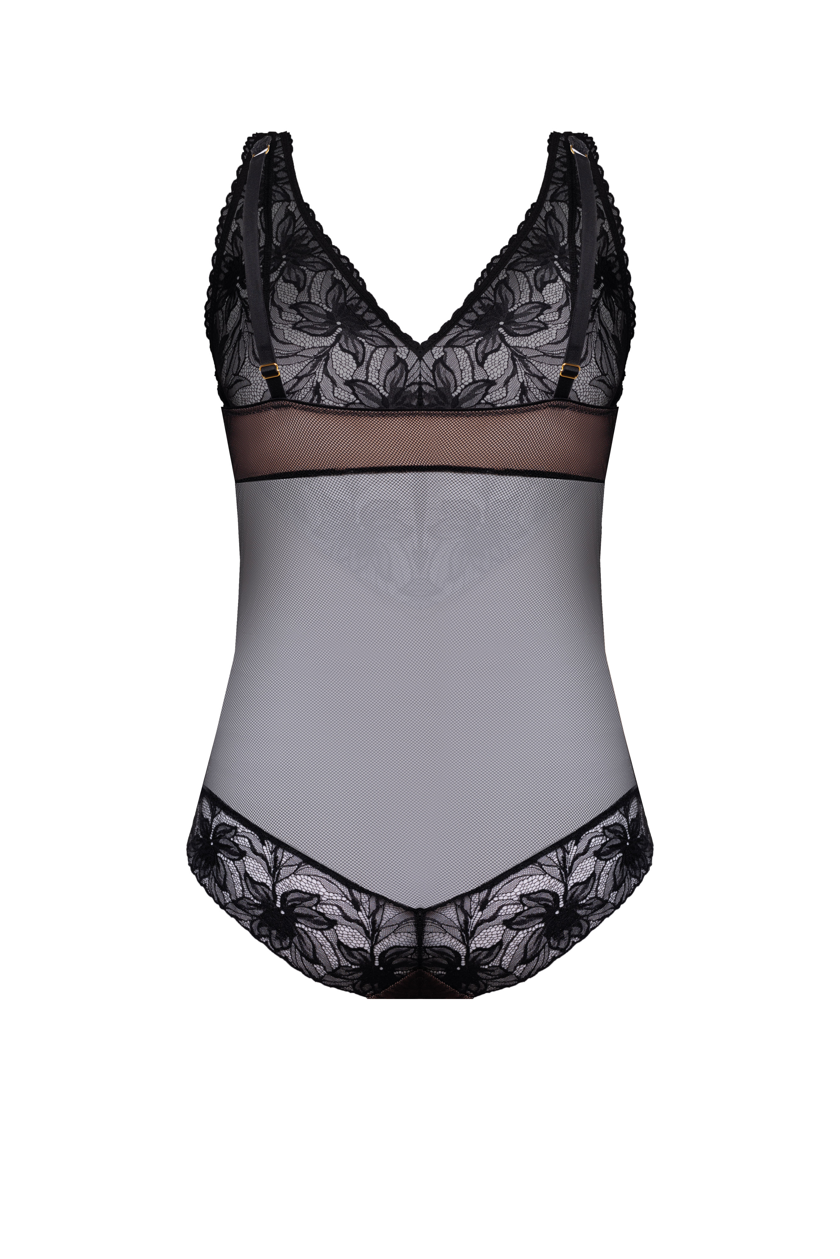 Eleganckie body Sarah wykonane z koronki i transparentnego tiulu. Dekolt w kształcie litery V i zmysłowy tył podkreślają kobiece kształty. Regulowane ramiączka zapewniają idealne dopasowanie, a lekki materiał – pełen komfort noszenia.